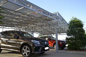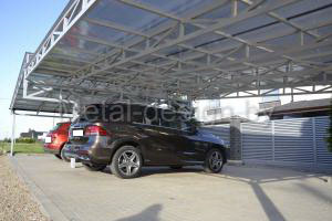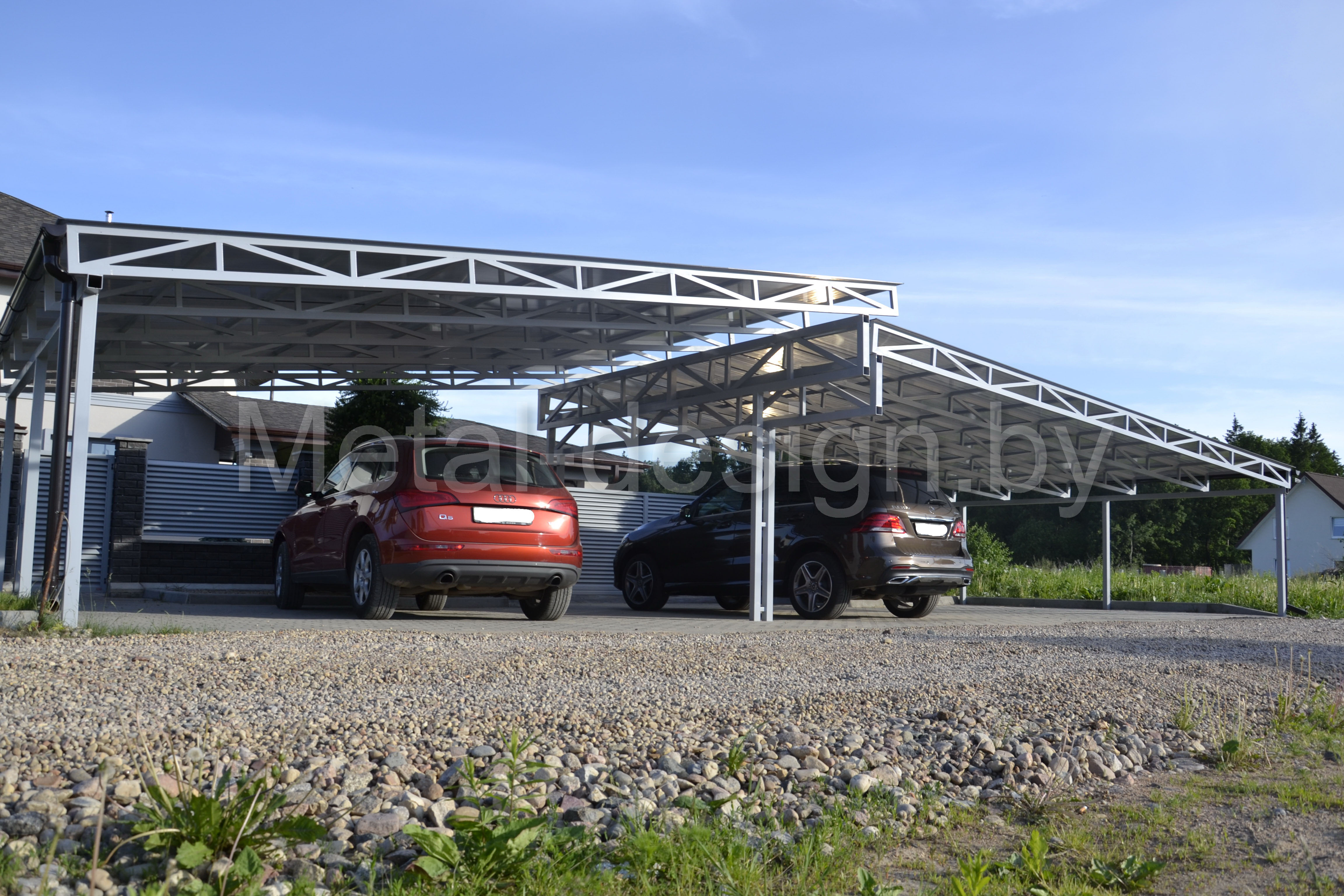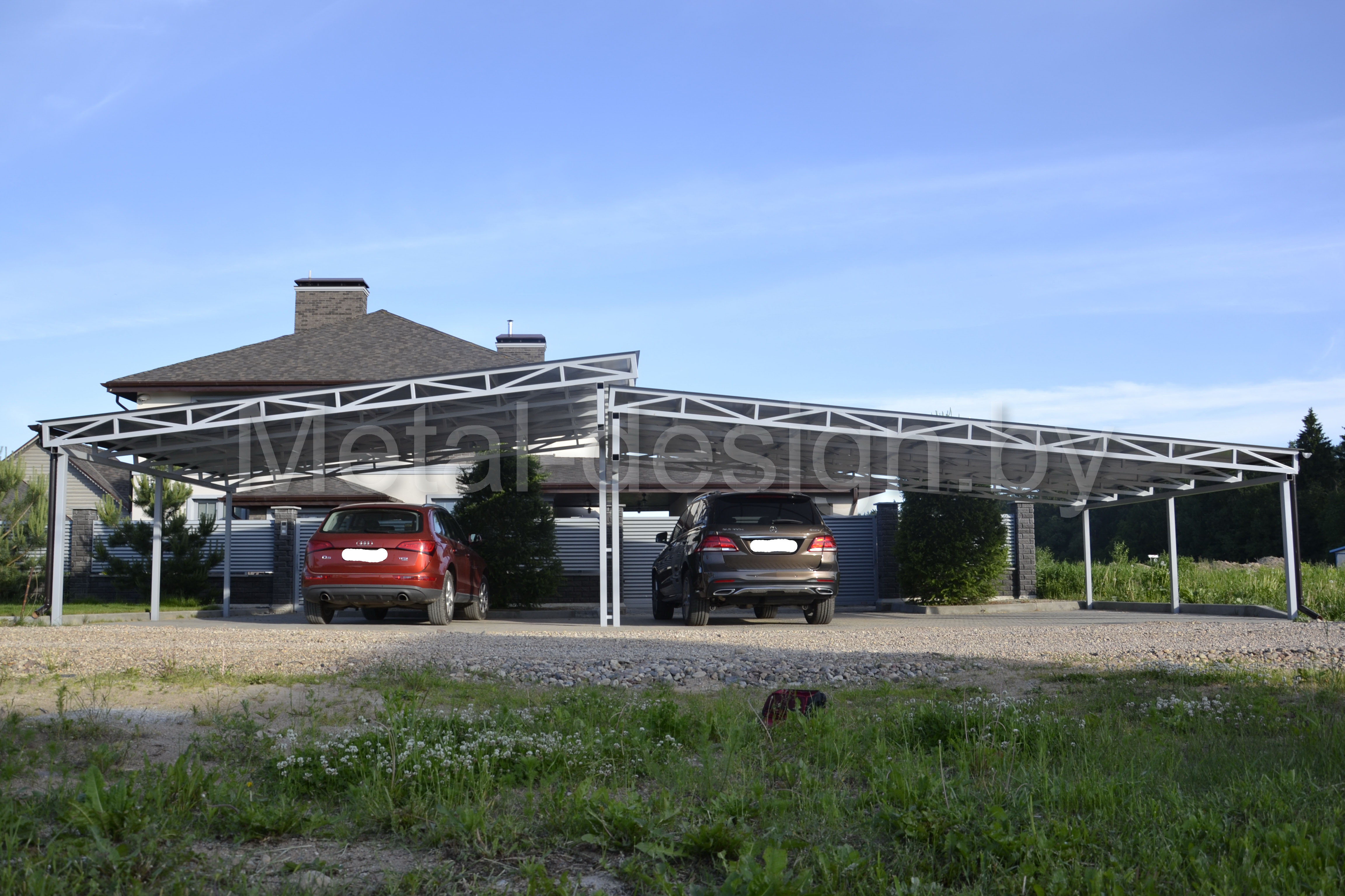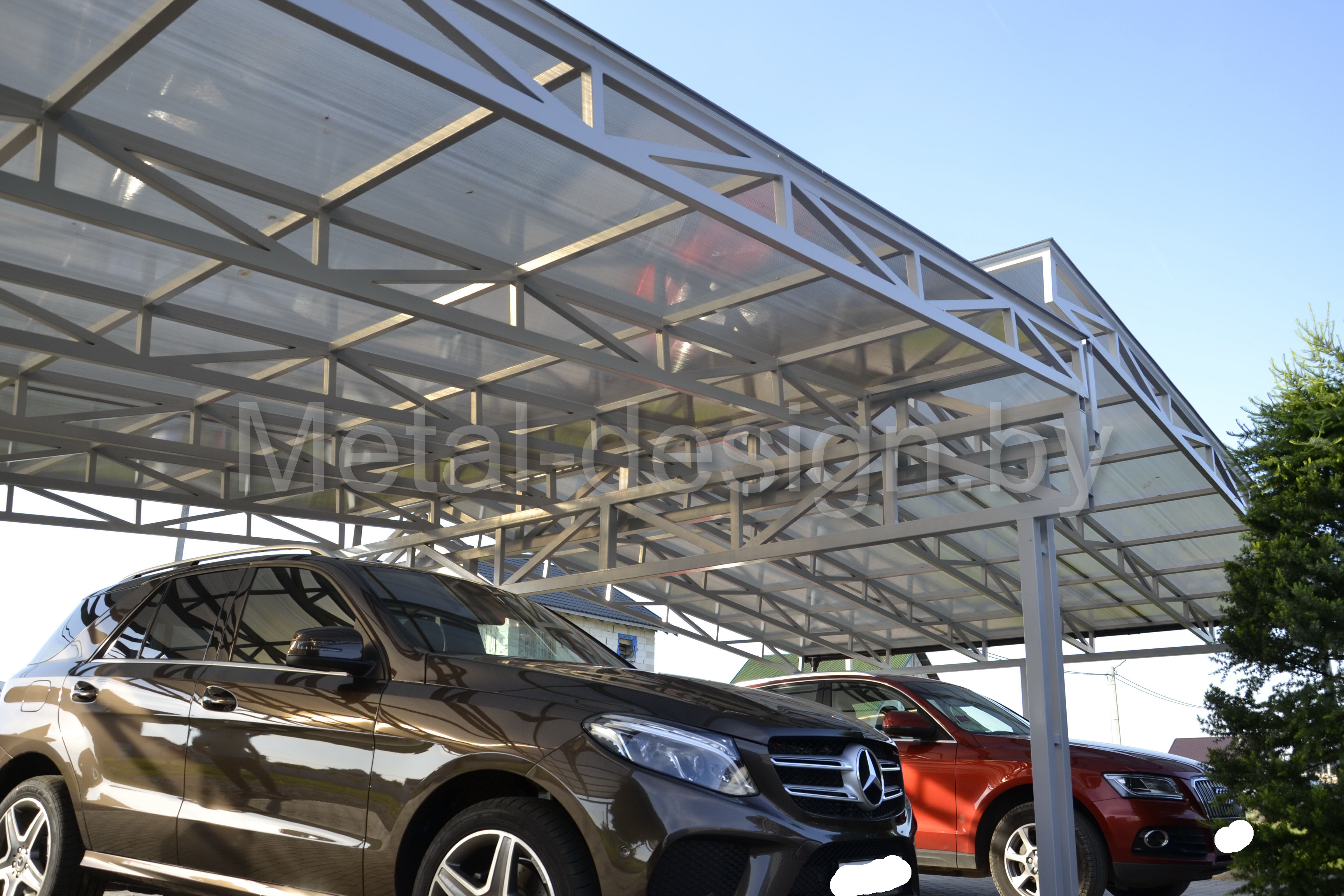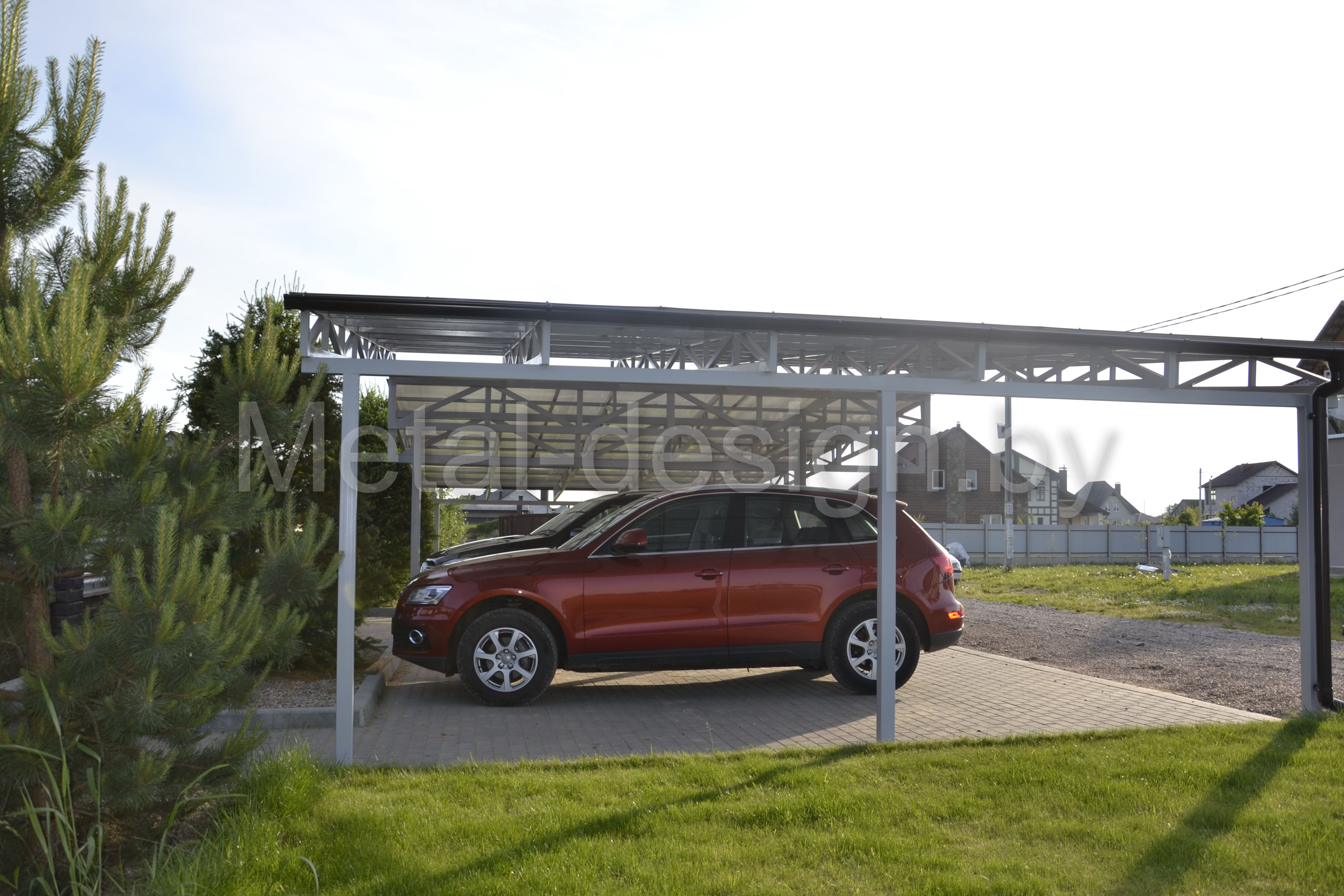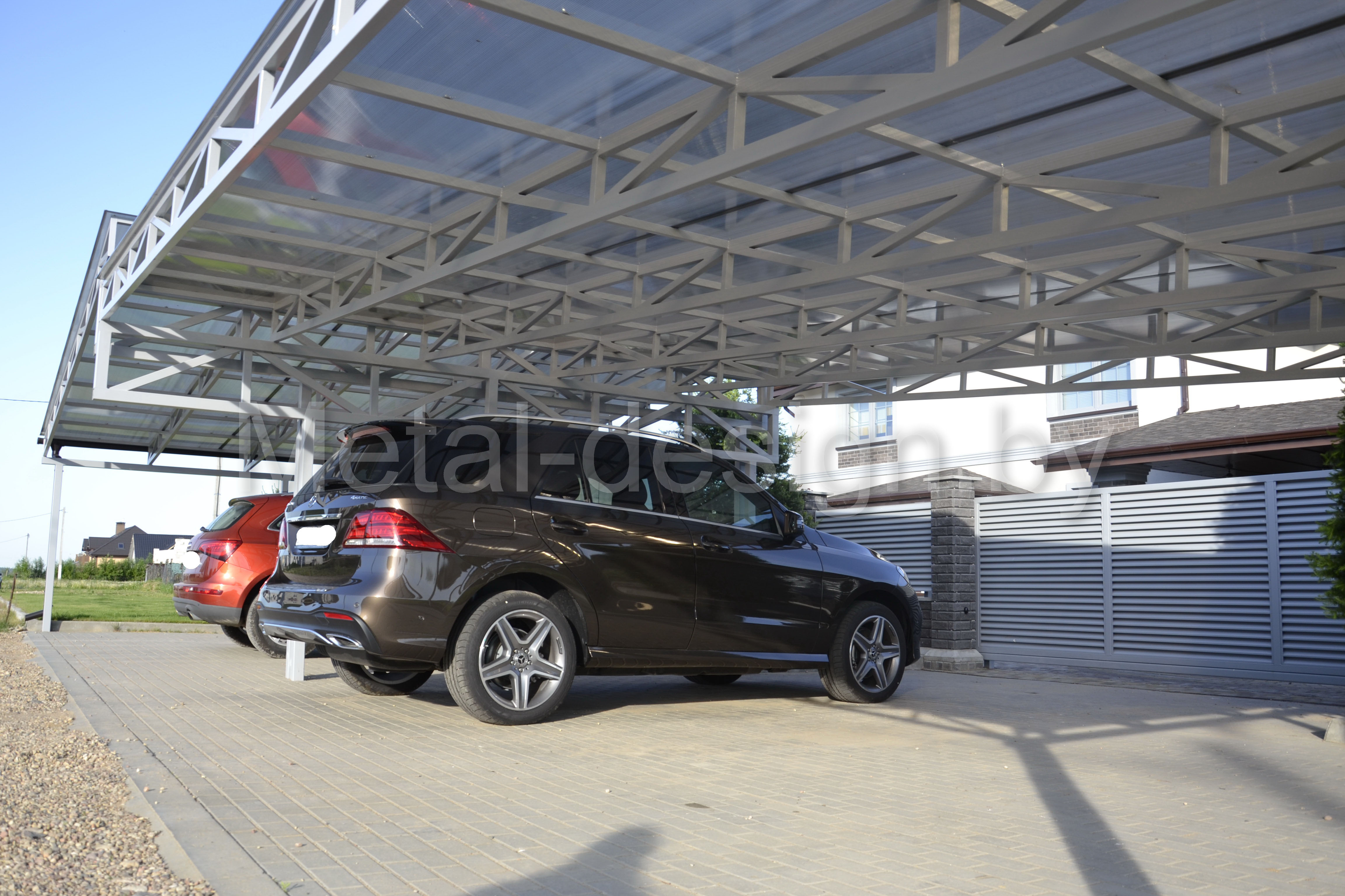 Это позволило не ставить столбы по центру навеса. И беспрепятственно выходить из автомобиля.