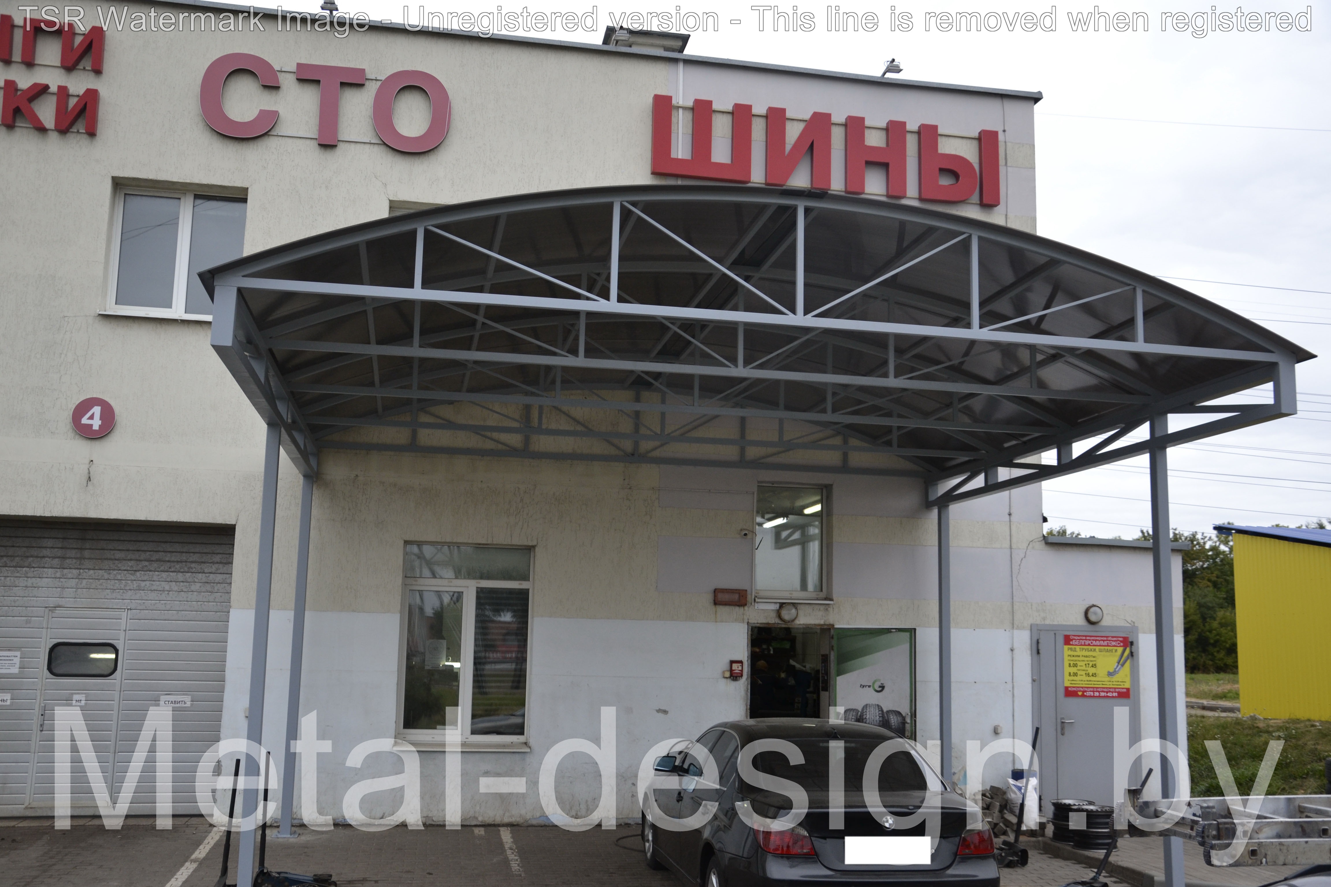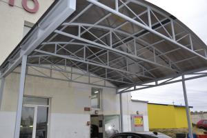 Высота навеса выбрана для возможности обслуживания различных автомобилей.