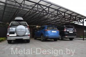 Комплектация: Этот Навес установлен на столбы 100*100*5 мм. Опорные консоли сварены из профиля 100*50*3 мм. Треугольные Фермы сварены из профиля 60*40*2 мм. Поликарбонат производство Израиль. Грунт и эмаль Финляндия.