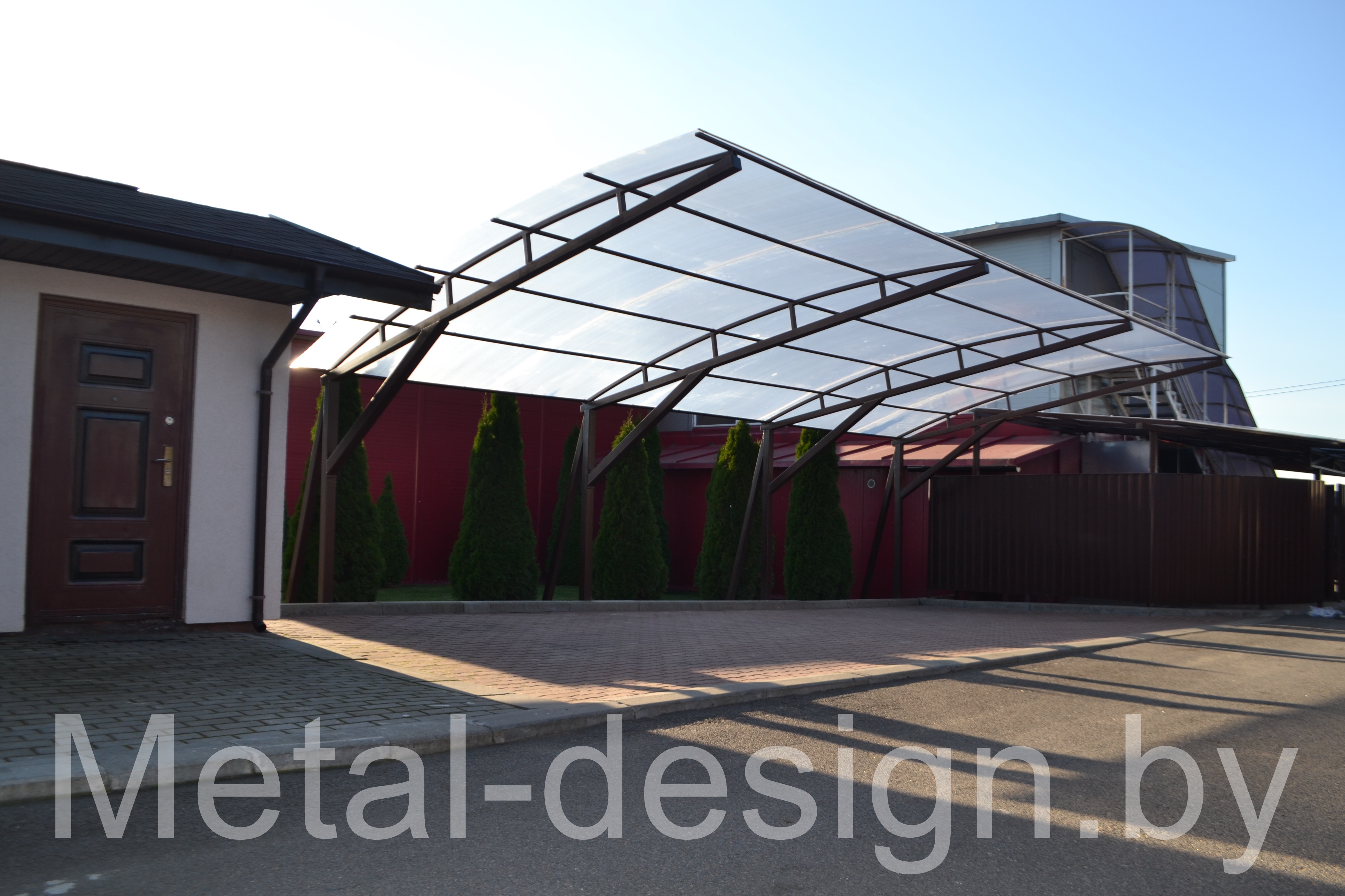 Навес накрыт сотовым поликарбонатом белорусского производителя. Покрашен краской производства Финляндия.