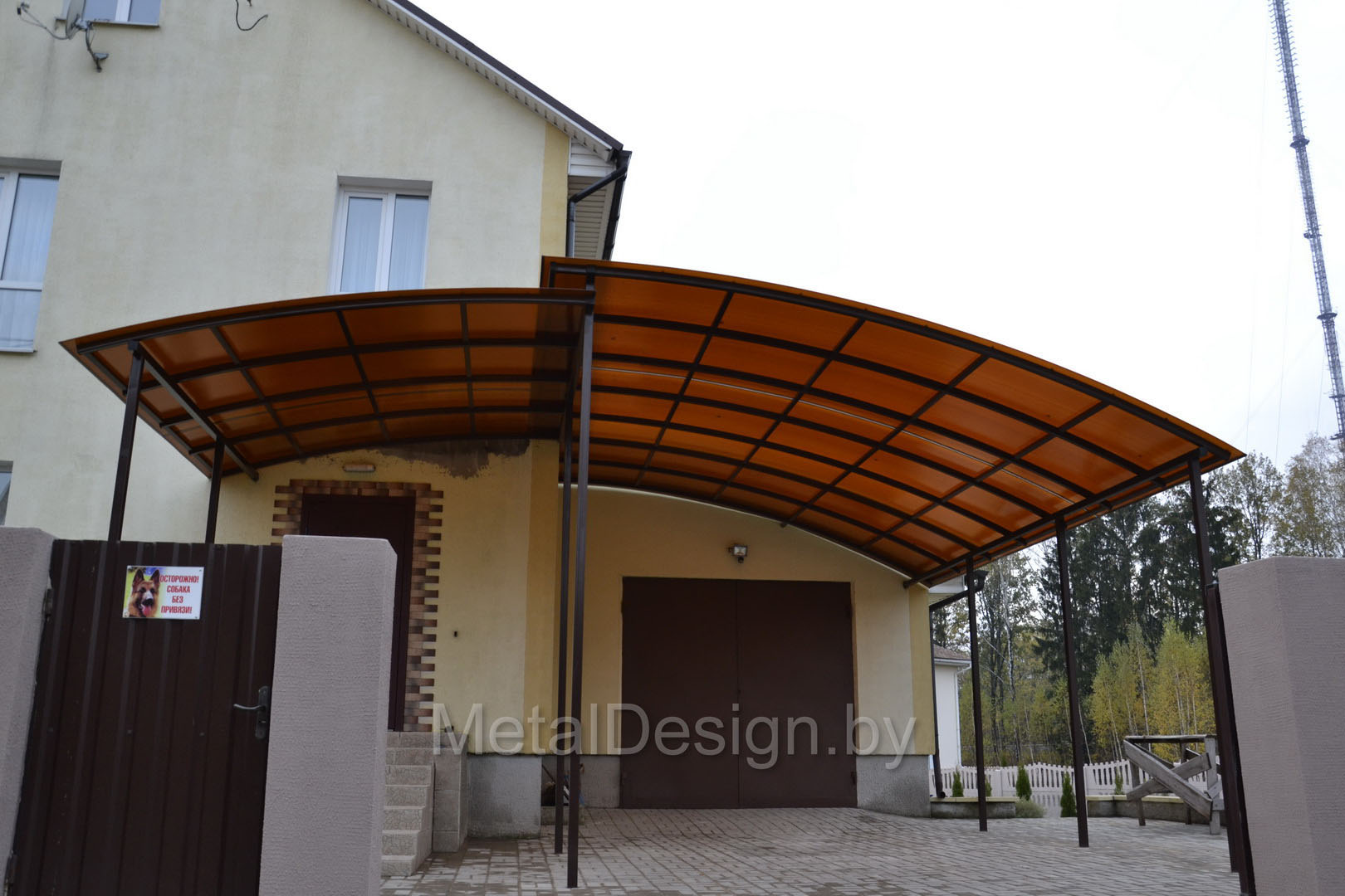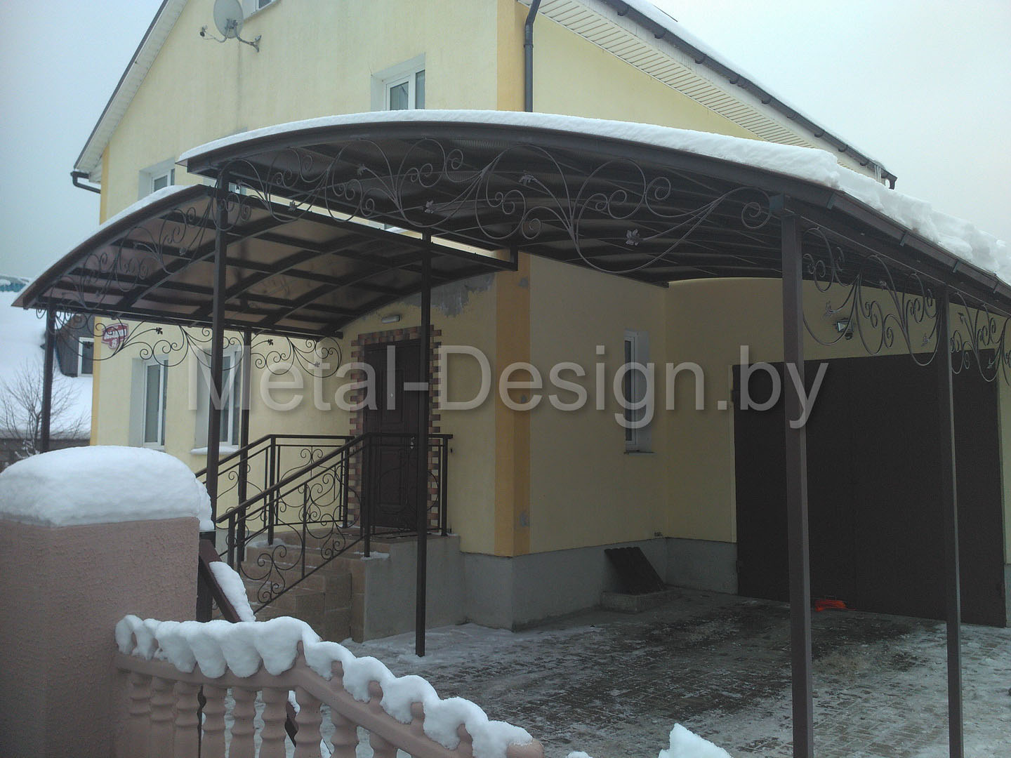 В процессе эксплуатации навес украсили ковкой ручной работы.