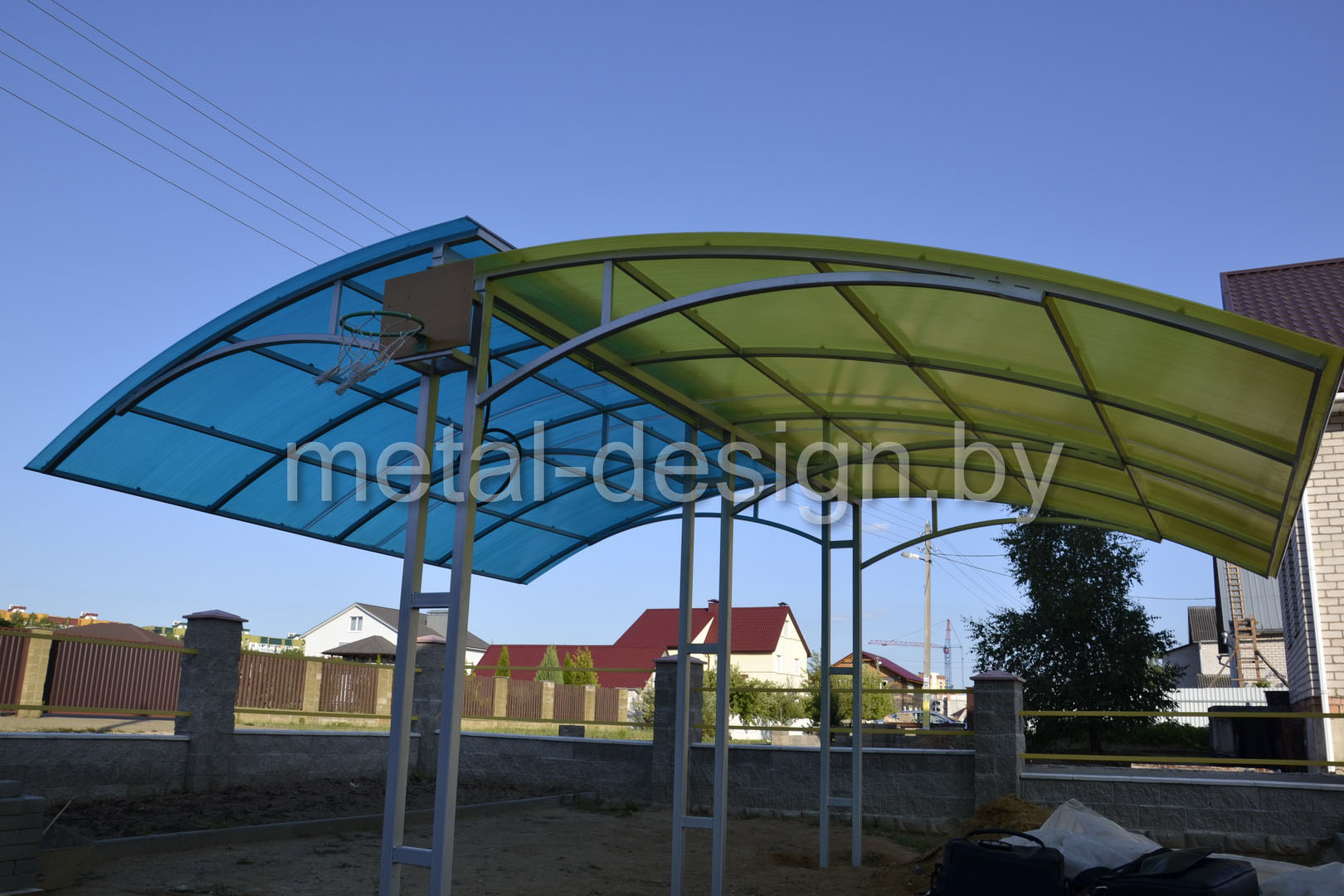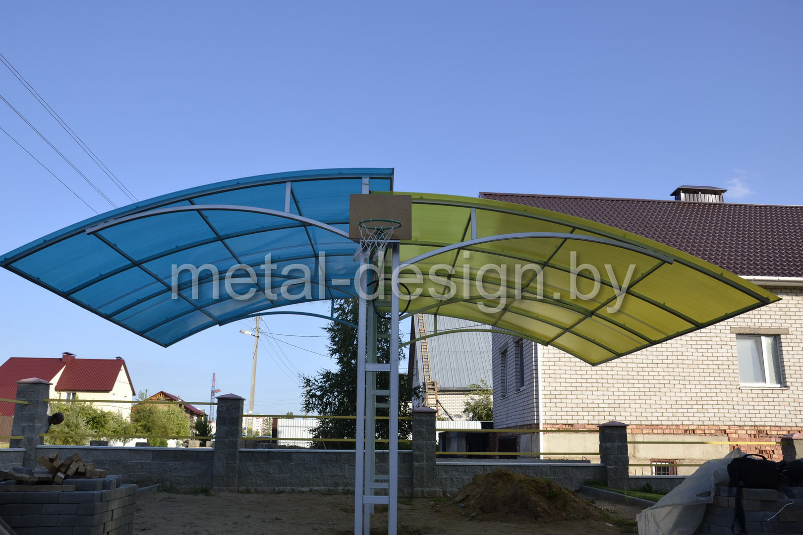 Навес накрыт поликарбонатом средней плотности, толщиной 6мм., производитель РФ.