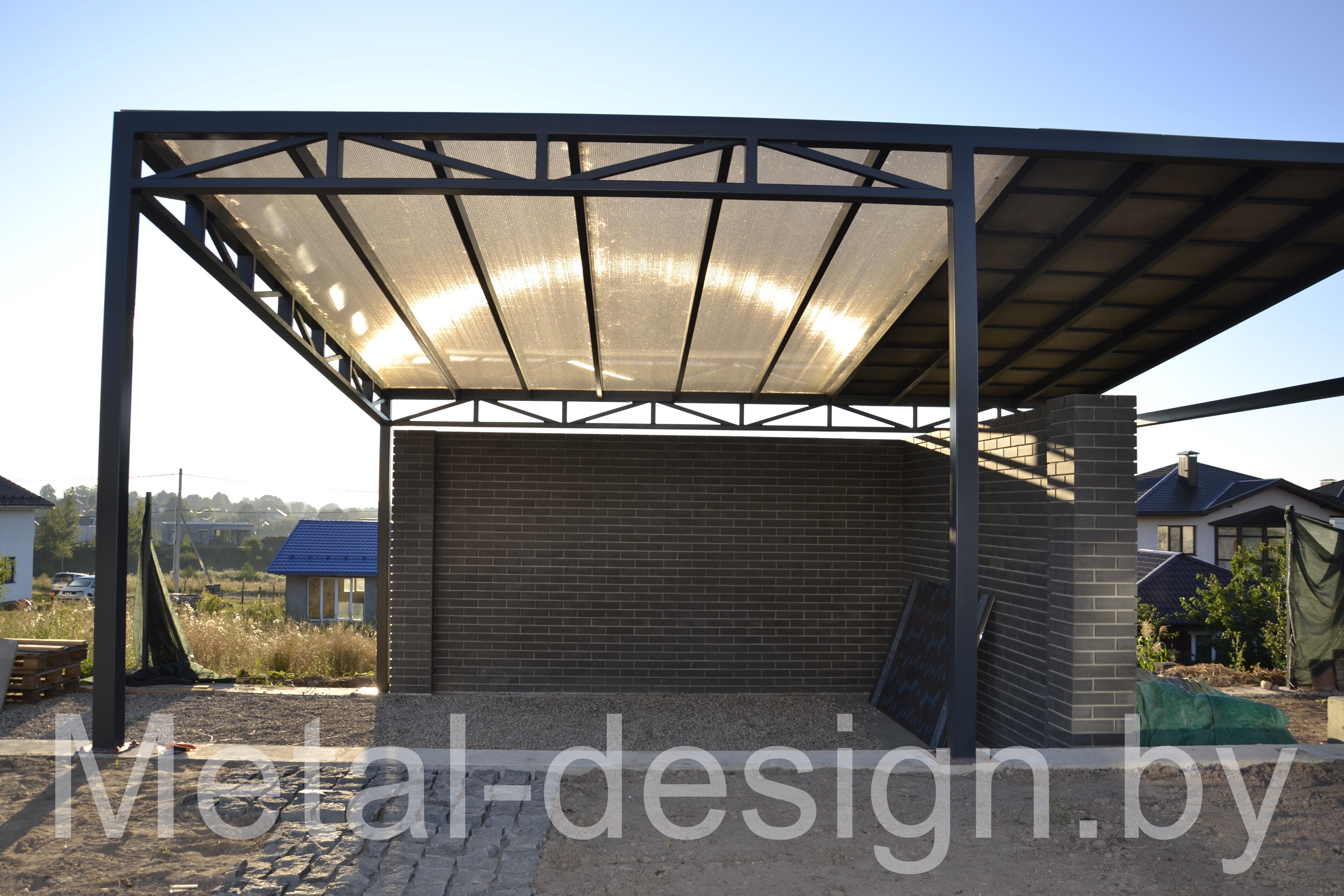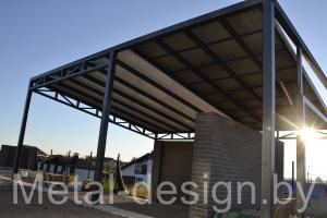Кровля навеса выполнена из двух различных материалов: поликарбонат и цементно-стружечная плита.(ЦСП).